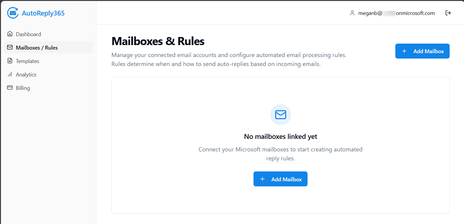 - Navigate to the AutoReply365 web application.